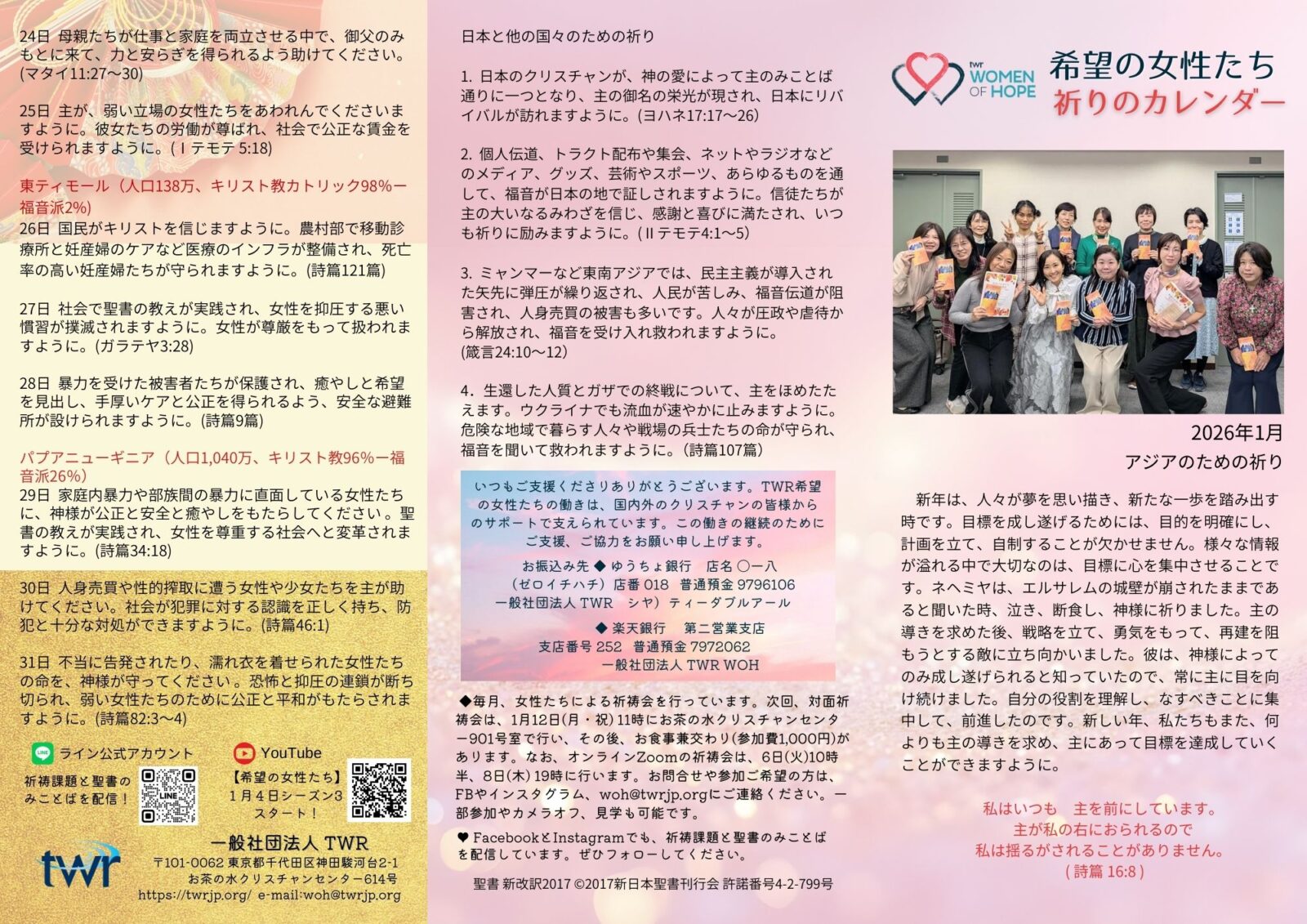 祈りのカレンダーのお申し込み先 → woh@twrjp.org